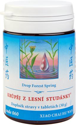 Bakteriálne a vírusové infekcie - horúčkovité ochorenia z vonkajšieho postihnutia - chrípka, zápal priedušiek a zápal pľúc, zápal lymfatických uzlín, akútne a chronické zápaly stredného ucha, opakované angíny, akútne detské hnačky, dlhodobá chronická zápcha u dospelých - tradičná čínska medicína - TCM Herbs - kód 060 - Krůpěj z lesní studánky - xiao chai hu